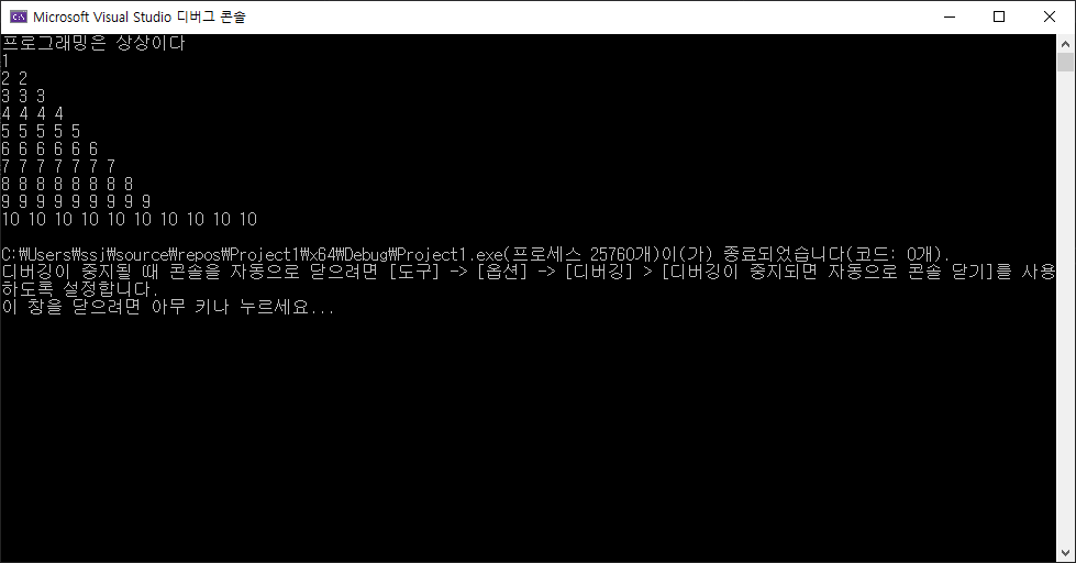 printf("프로그래밍은 상상이다 \n");