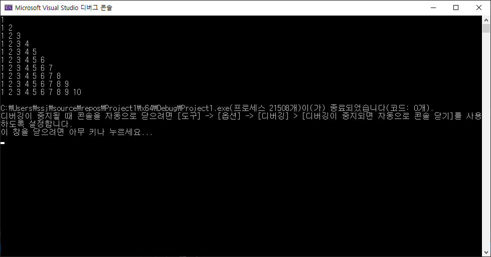 1, 1 2, 1 2 3, ... 출력하는 프로그램 소스코드입니다.