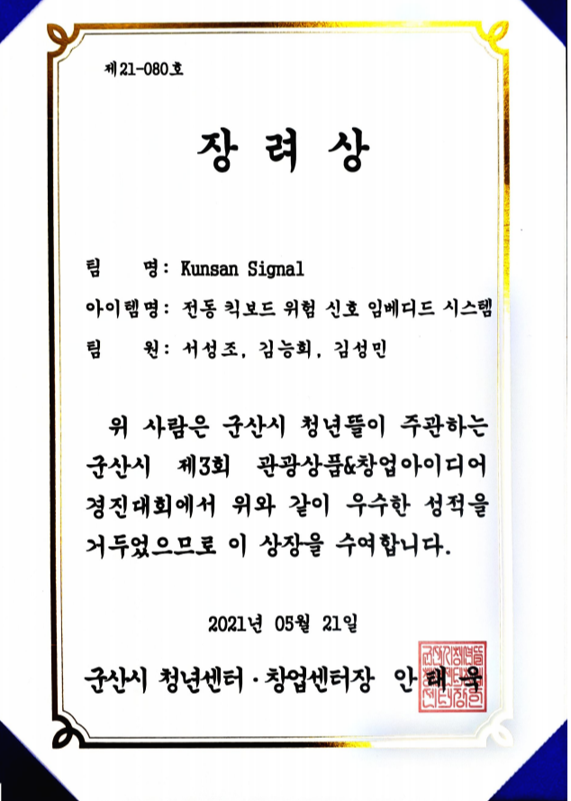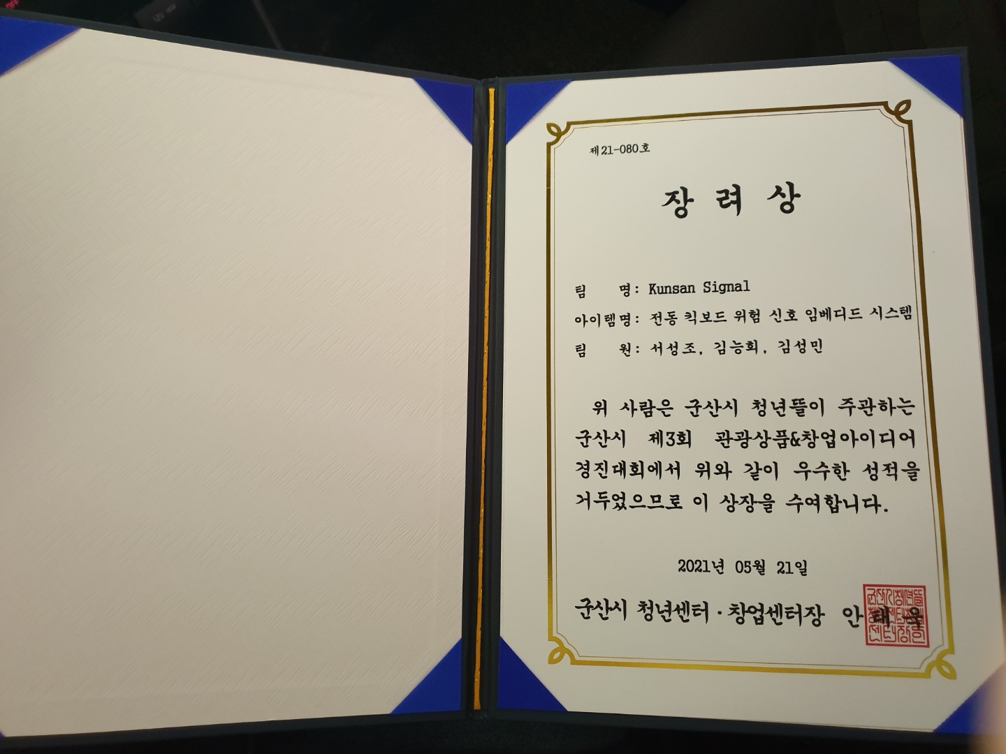 팀장으로 처음으로 급하게 준비한 대회인 것치고는 장려상은 나름 만족할만한 수확이 생긴 것은 매우 기쁜일인 것 같아요 ㅎㅎㅎ