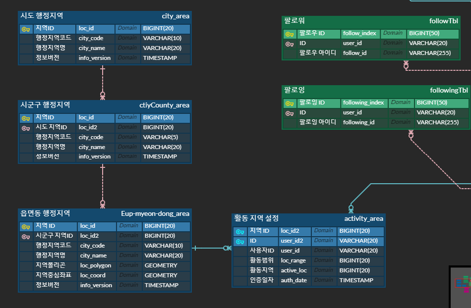 2.16 ~ 3.18일까지 진행되는 파이널 프로젝트에서 제가 erd를 메인으로 먼저 그리고 백엔드 파트 분들이랑 지속적으로 피드백 및 소통으로 erd를 개선해 나아가고 있습니다.