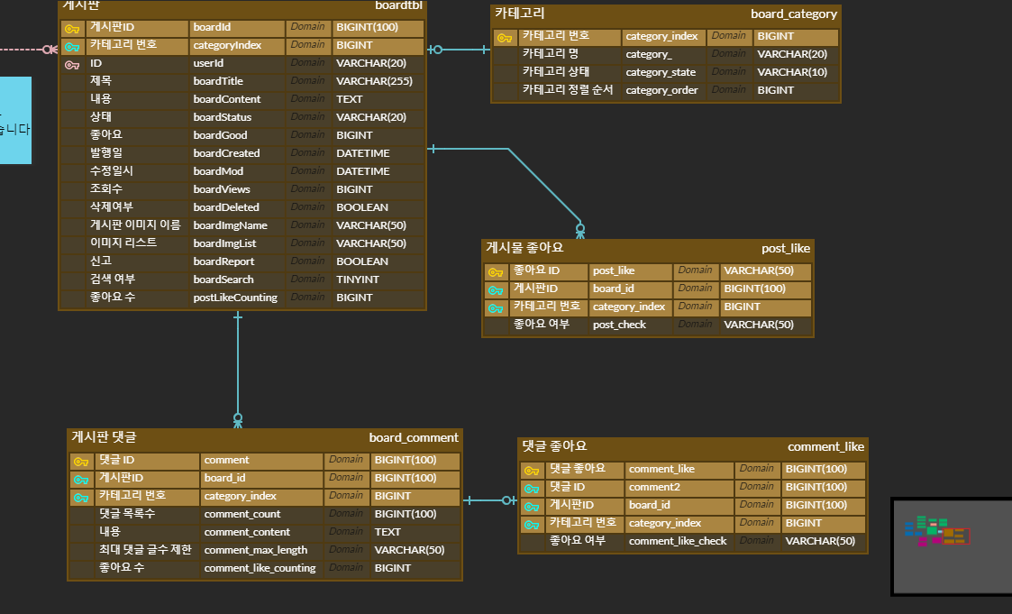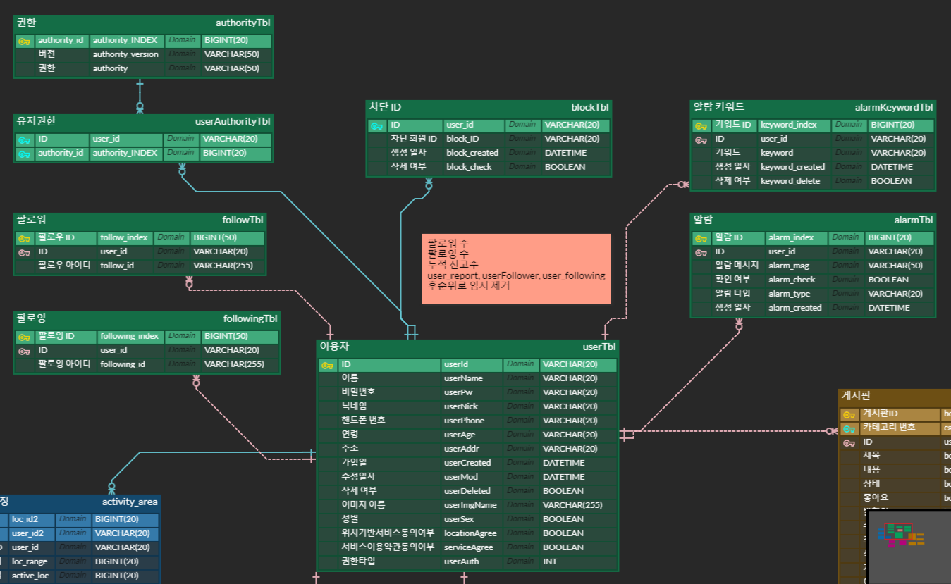 초안으로 그려놨던 erd에서 조장님이 카멜 표기법으로 표기를 진행해주셔서 전체적인 erd의 값들이 카멜 표기법으로 수정되면서 추가 삭제 과정을 지속적으로 나아가고 있습니다.