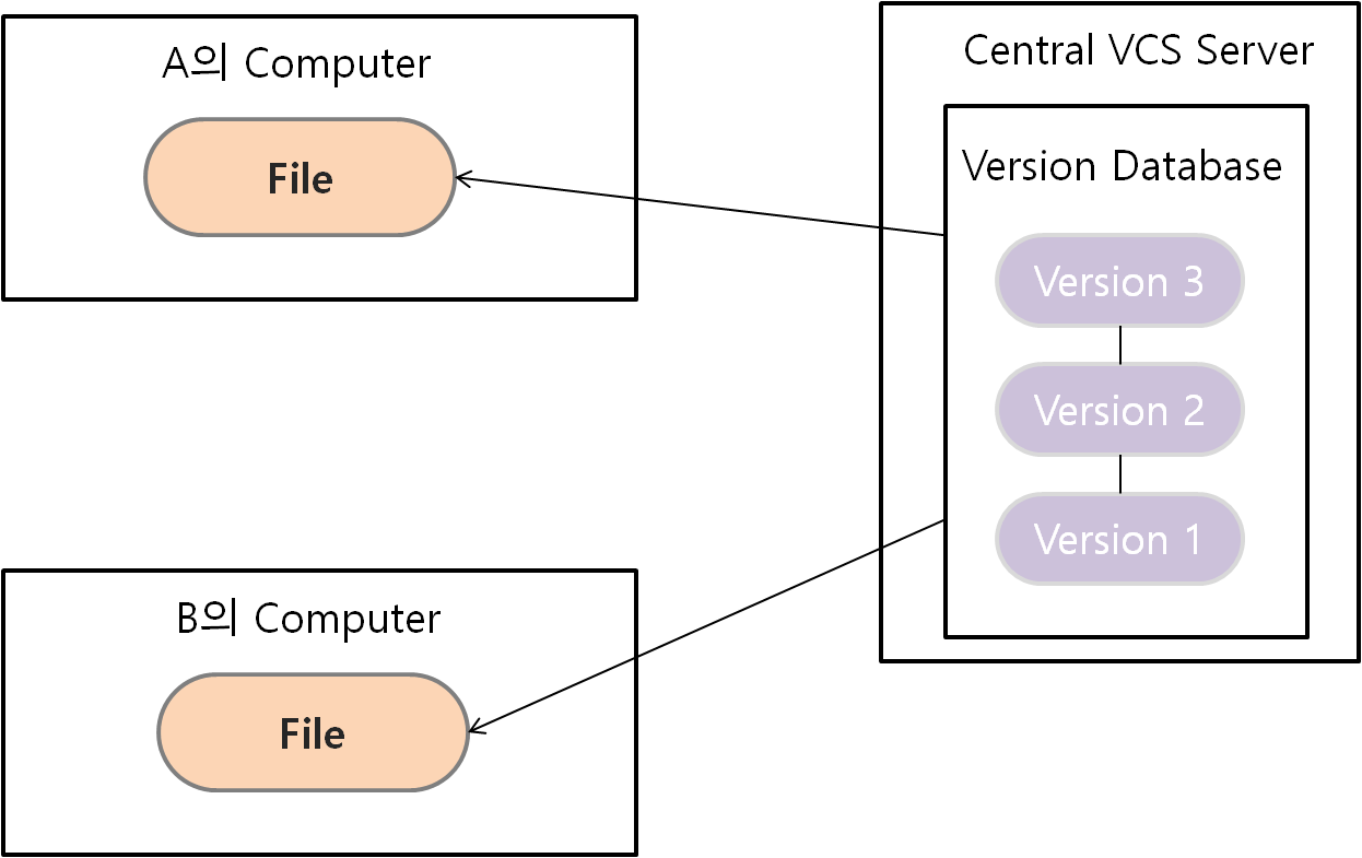 중앙 집중식 버전 관리 CVCS(Central VCS Server) 방식