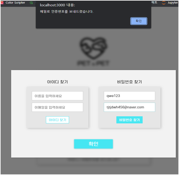 NodeMailer를 활용하여 아이디와 비밀번호 찾기를 진행했습니다.