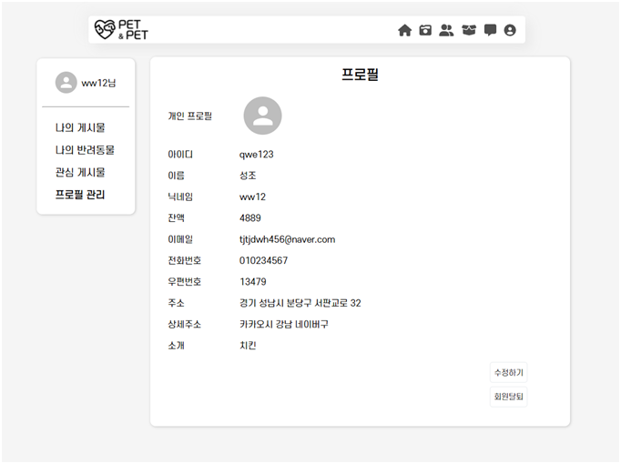 -- 마이페이지(나의 반려동물)
