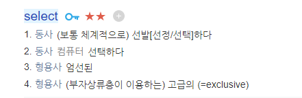 위와 같이 무엇을 고르거나 선택하는 경우에 Select라는 단어가 쓰인다.