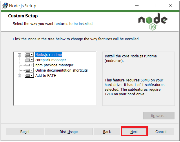본인은 지금 당장 Node.js로 C/C++를 다룰 일이 없으므로 그냥 Next를 누른다.