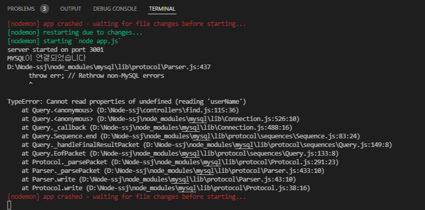 이번 포스팅에서 나온 에러는 쿼리문이 userName을 참조할 수 없는 경우이다.
