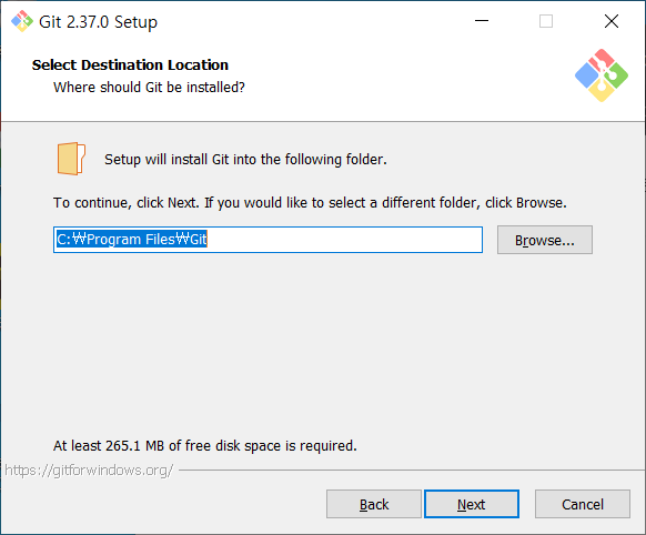 본인의 경우 Git을 C드라이브에 설치할 것이므로 C:\Program Files\Git의 기본 설정 주소가 맞다.