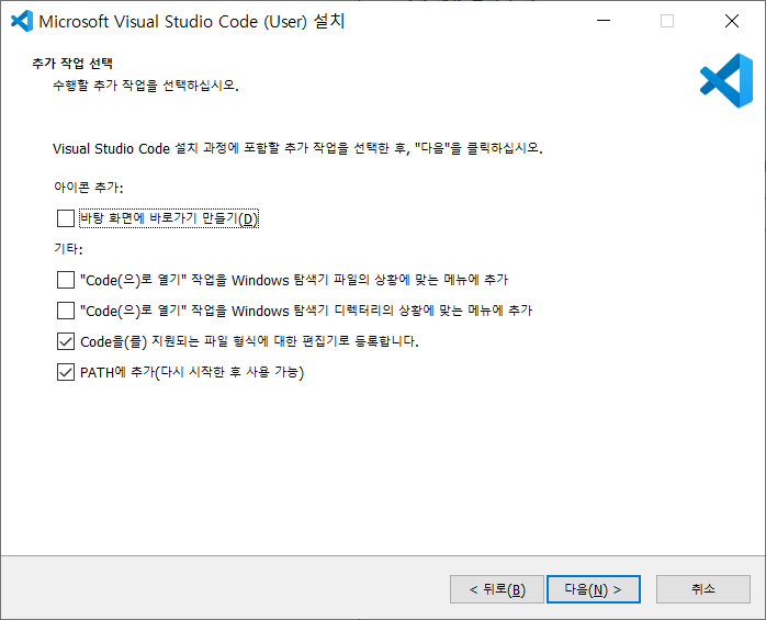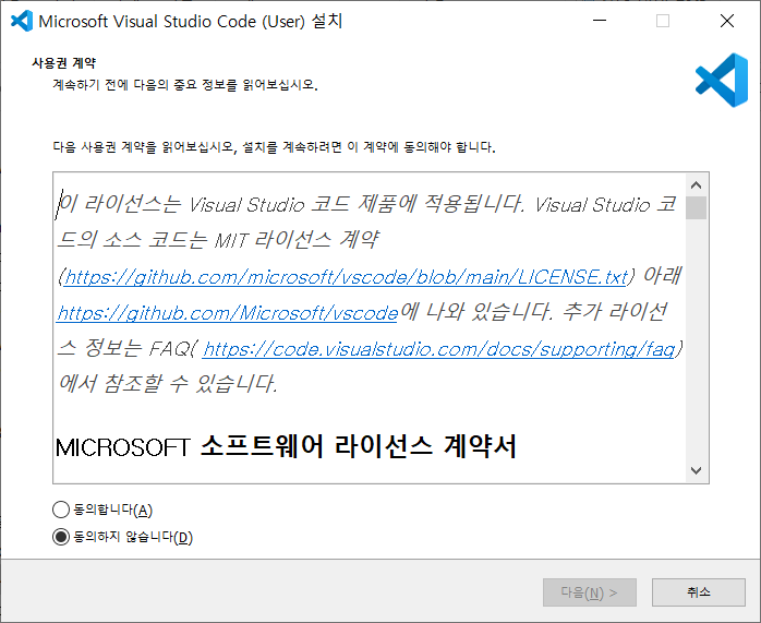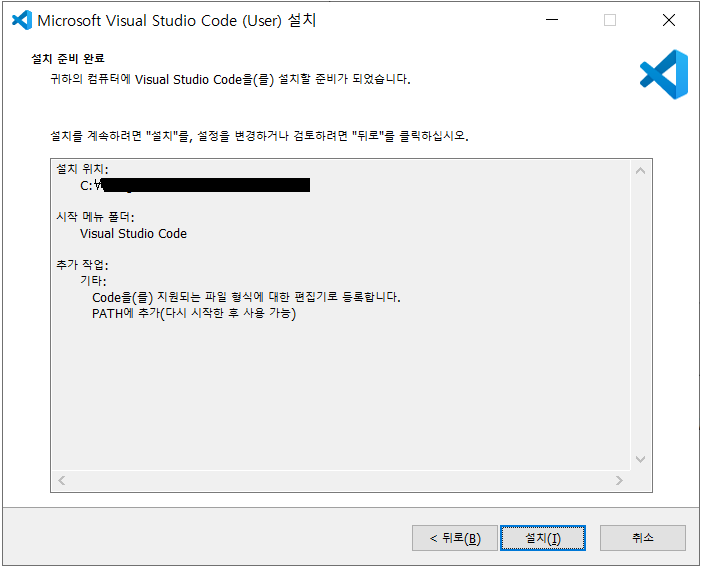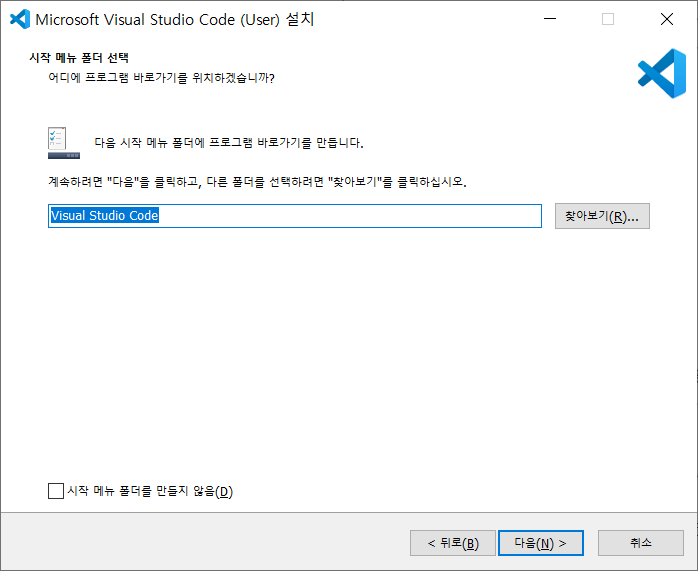 Vscode를 주로 사용하고 본인은 Vscode를 설치하기 때문에 Vscode를 기준으로 설치를 진행한다. (Next 클릭)