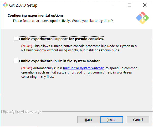 Bash 환경에서만 사용할 것인지, Unix 환경의 Command Prompt를 활용하여 사용할 것인지를 묻는 옵션이다.