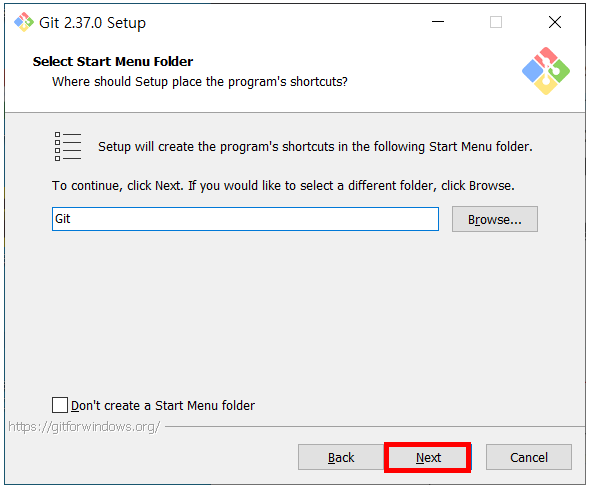 시작 폴더를 선택하는 곳이다 Next를 눌러 넘겨준다.