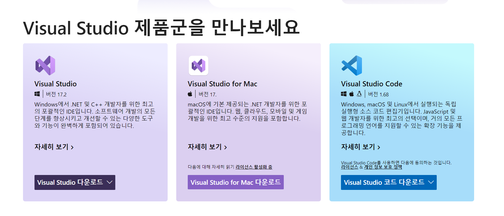주소 : https://visualstudio.microsoft.com/ko/