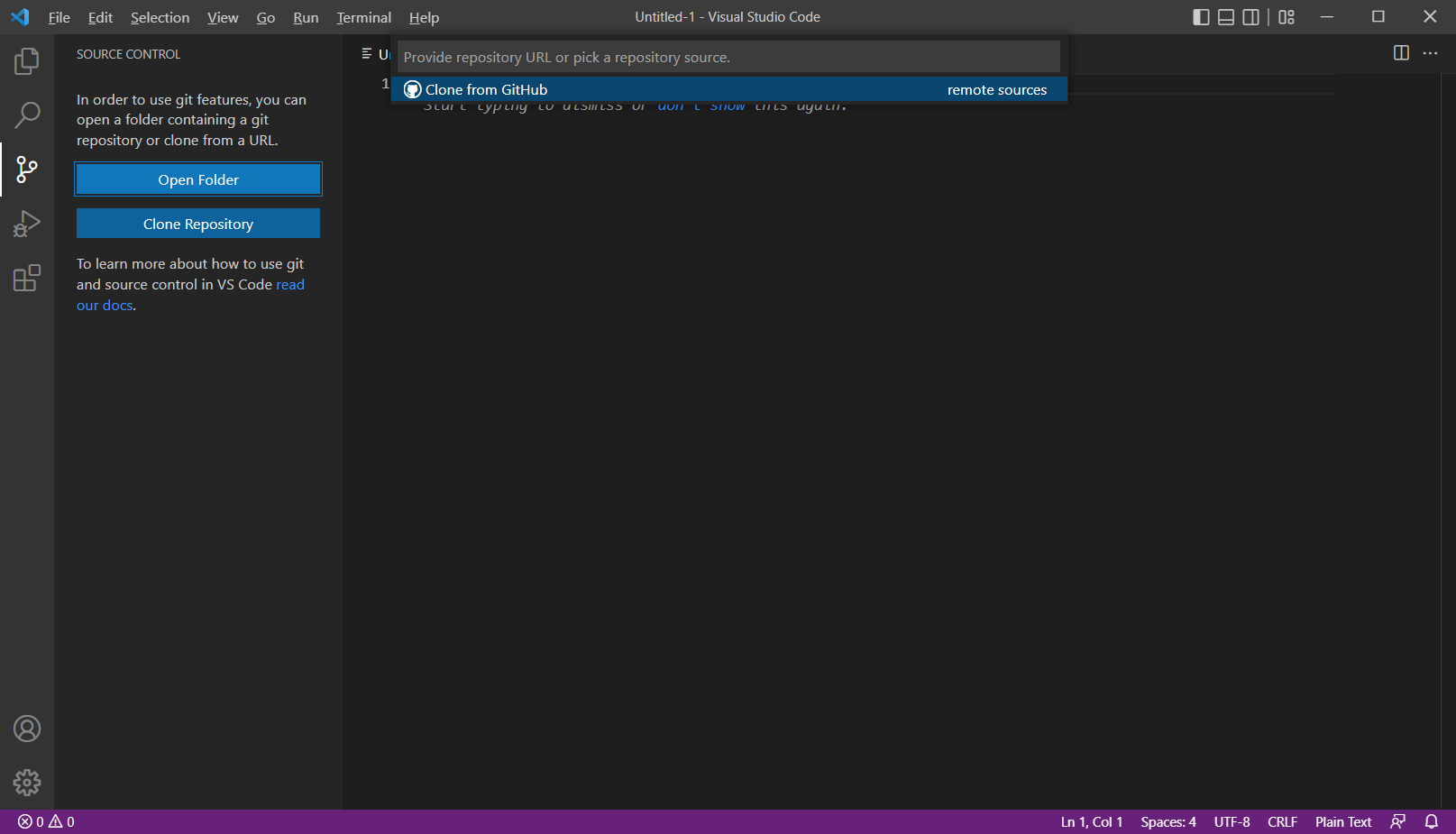 Clone Repository라고 나와있는 곳을 클릭하면 다음의 창이 나온다.