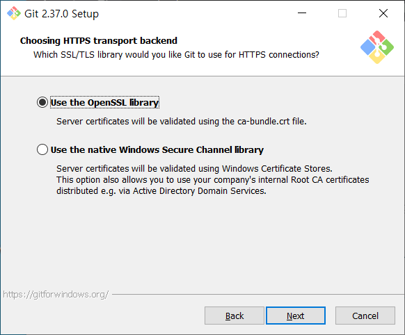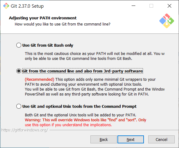 본인은 깃 환경변수를 사용하여 진행하는 2번째 칸을 클릭하여 설치를 진행한다.