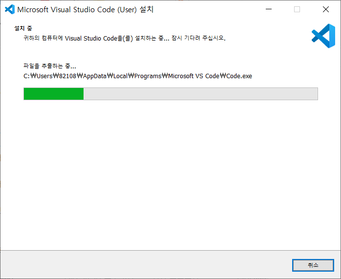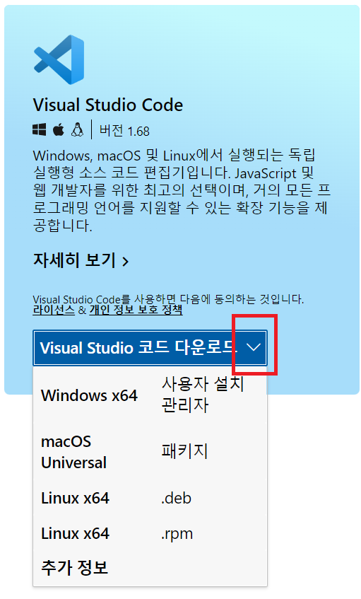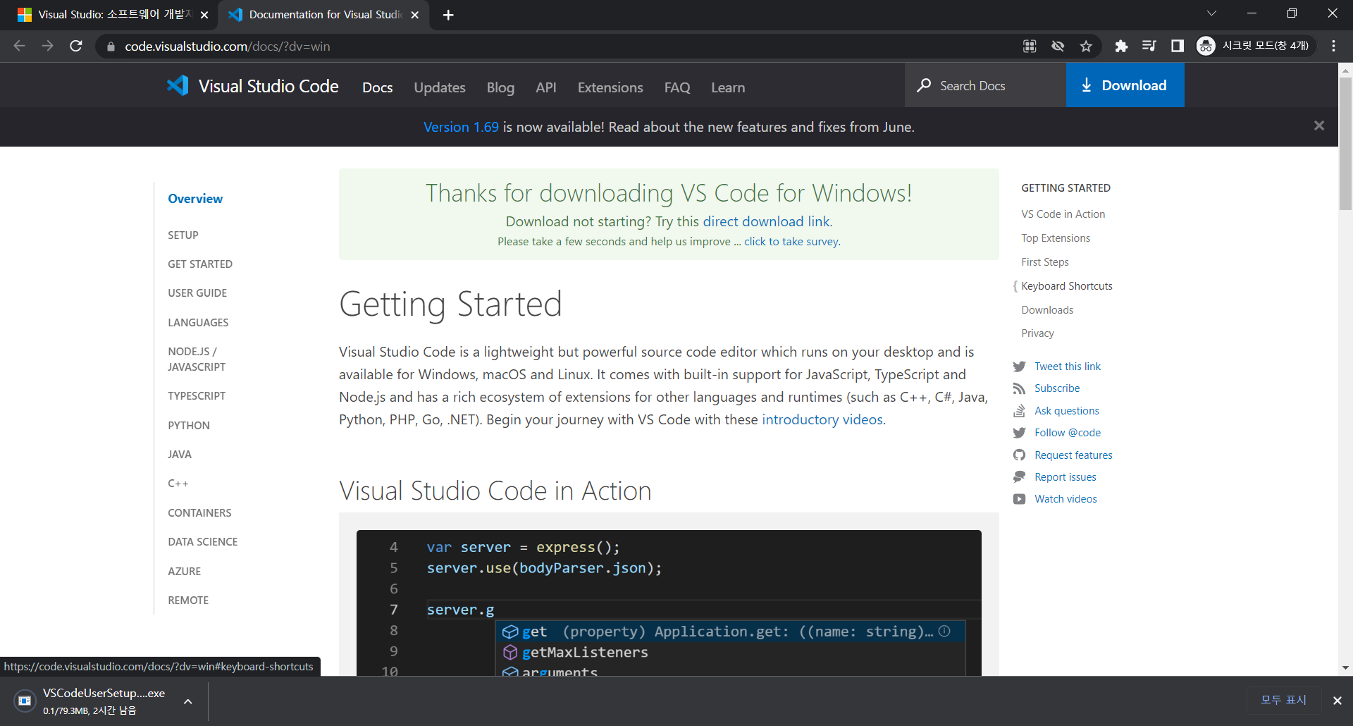 페이지가 이동하면서 vscode 설치 파일이 다운로드 된다
