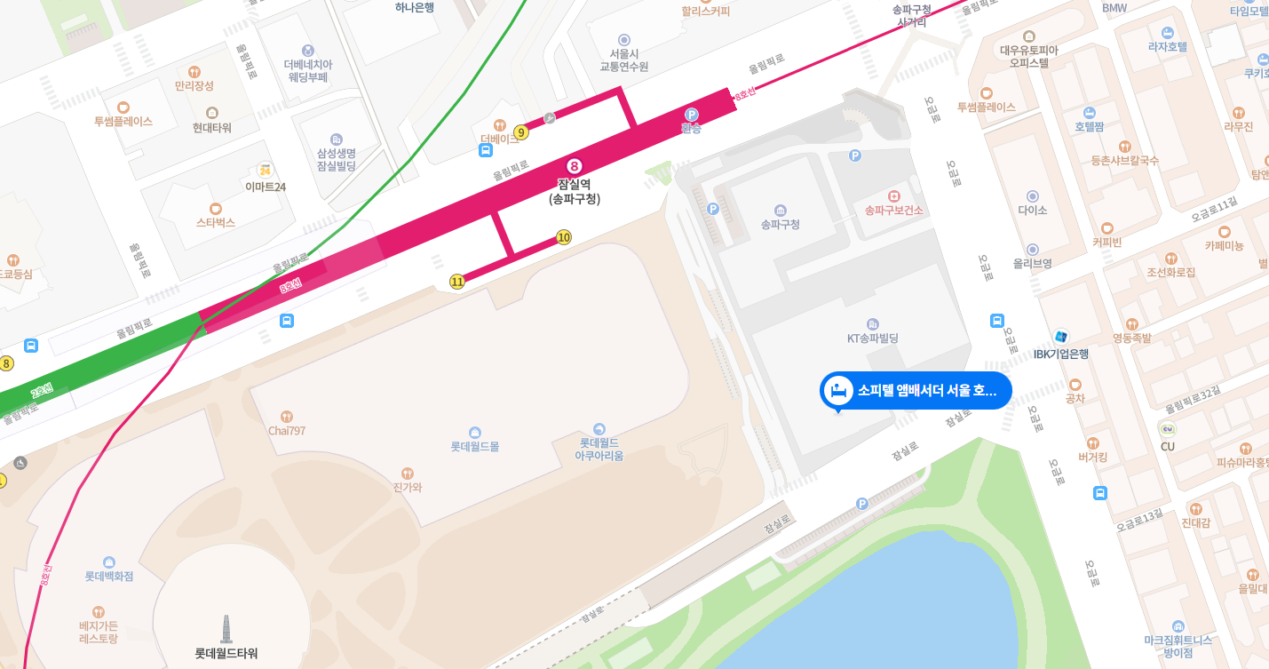 2호선과 8호선이 공존하는 잠실역에서 하차 후 10번 출구를 찾아서 나오시면 다음과 같은 길이 보일 겁니다!