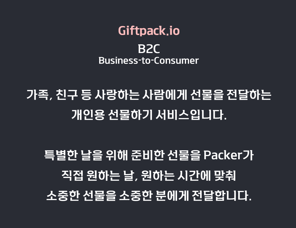 정식으로 프로토타입 개발에 들어가기 전에 Giftpack이란 어떤 회사인지 또한 어떤 API 문서를 가지고 있는 회사인지 소개 드리려 해요!