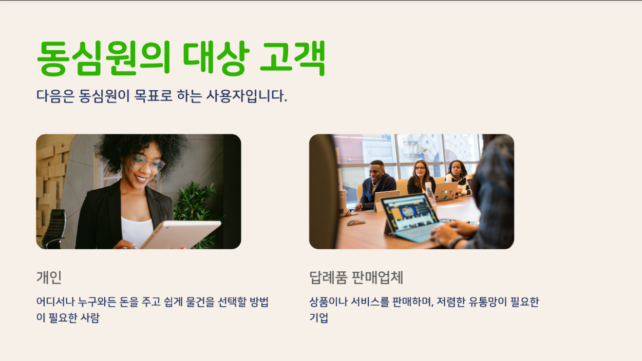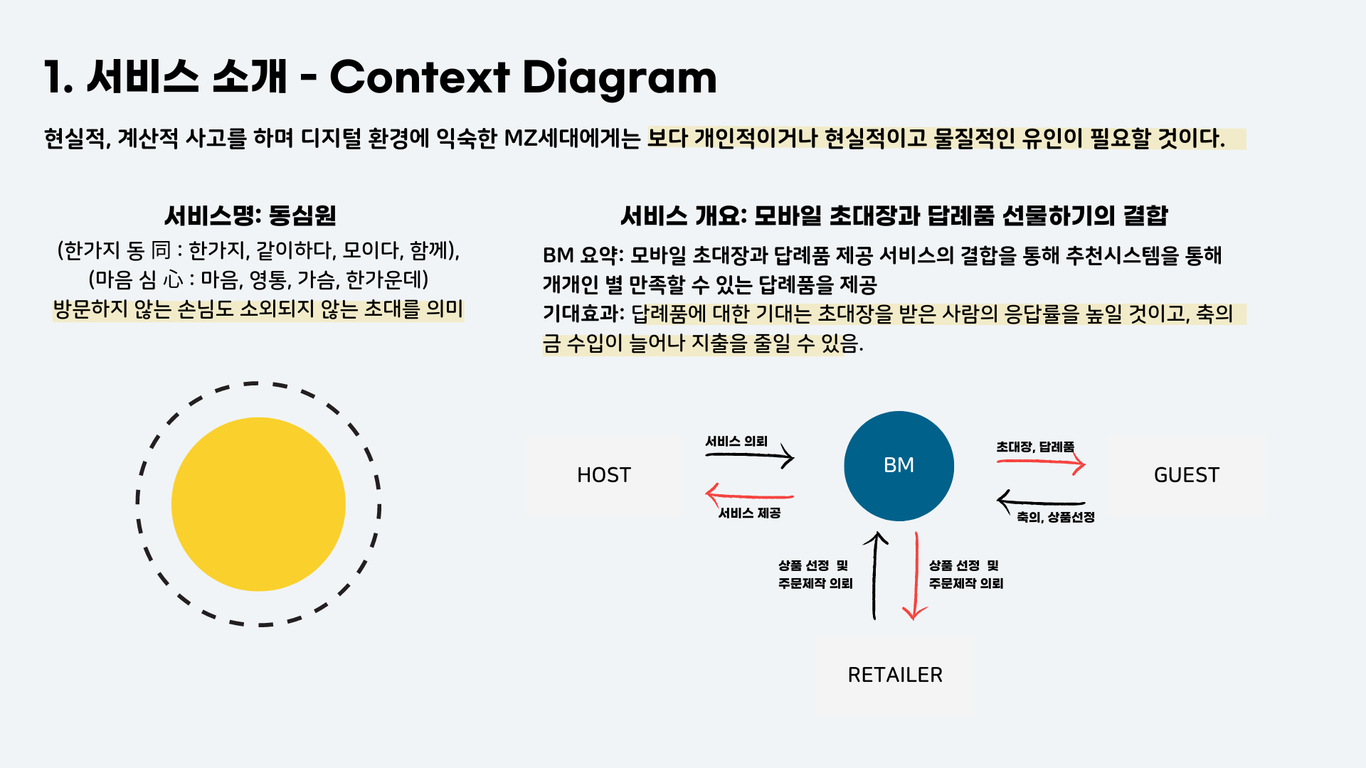 개발 1팀은 가상의 회사로 성조 주식회사에 동심원이라는 플랫폼 서비스를 개발했습니다.