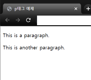 p태그는 항상 새 줄에서 시작되며, 브라우저에서 단락 앞뒤에 일부 공백(여백)을 자동으로 추가한다.