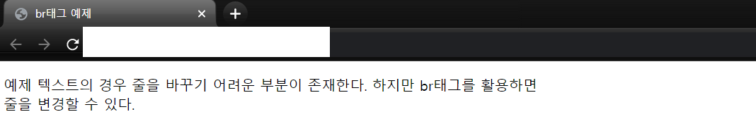 <p>예제 텍스트의 경우 줄을 바꾸기 어려운 부분이 존재한다. 하지만 br태그를 활용하면</br> 줄을 변경할 수 있다.</p>