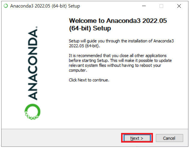 다음의 Anaconda 파일을 실행한다.