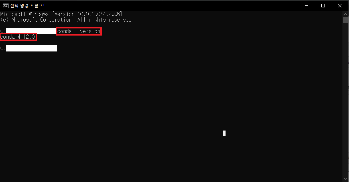확인하는 코드는 2가지 방법이 있다. conda -V 또는 conda --version