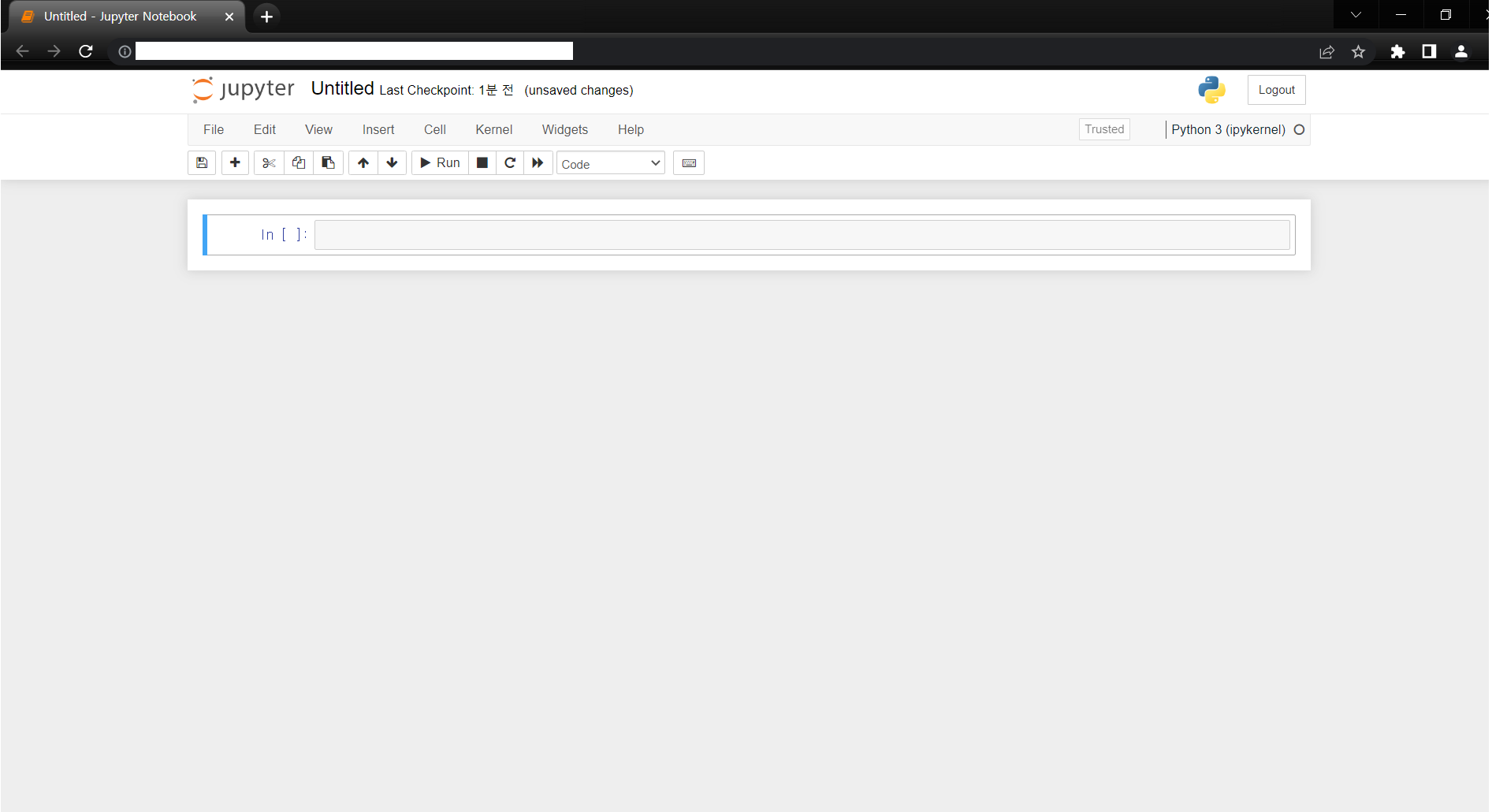 다음의 창에 jupyter notebook을 입력한다.