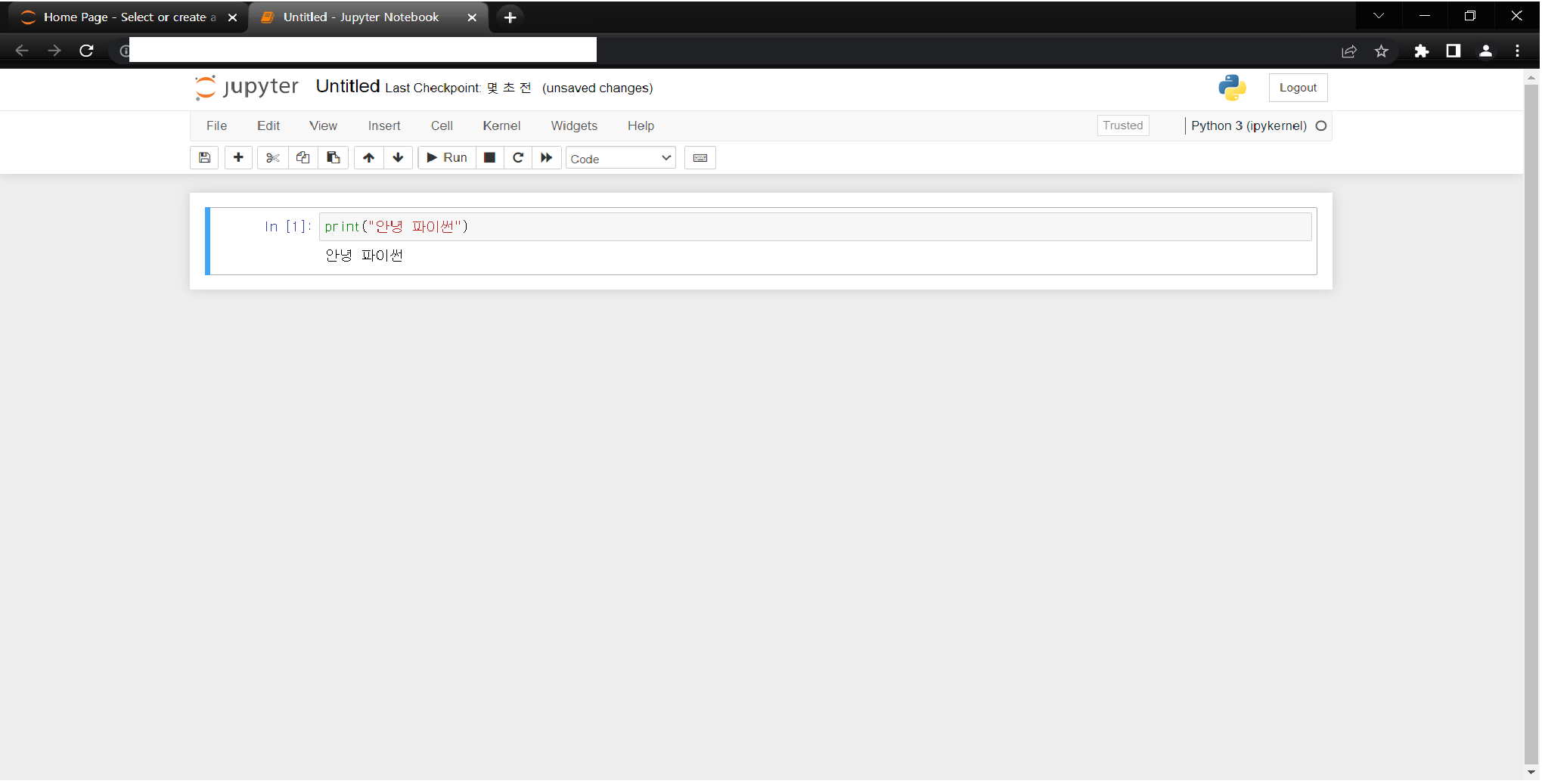 아나콘다에 Jupyter Notebook이 포함되기 때문에 제대로 설치했다면 바로 실행할 수 있는 것이다.