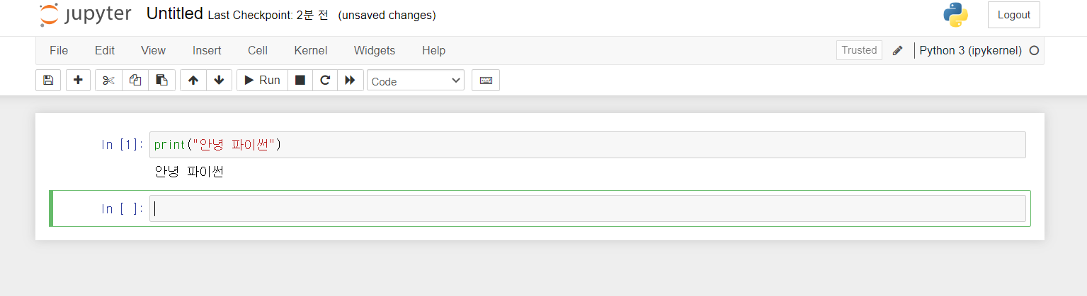 in [] 박스 옆에 칸에 다음과 같이 입력 후. Ctrl + Enter를 눌러서 실행해 보면 다음과 같이 나온다.