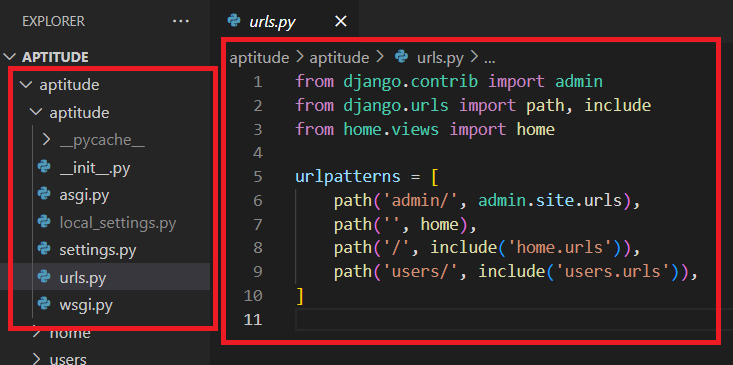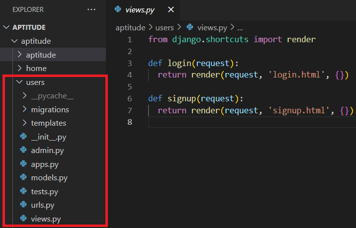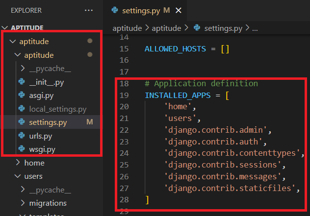 본인 프로젝트 내부에 app은 home, users 앱(App) 2개가 존재한다.