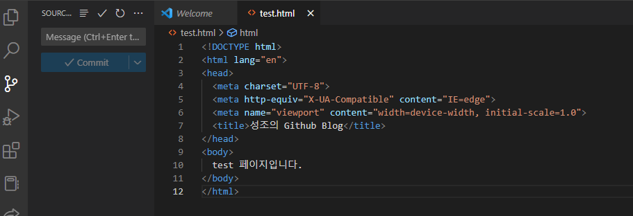 이 이렇게 test.html을 간단하게 작성하고 commit을 한다.