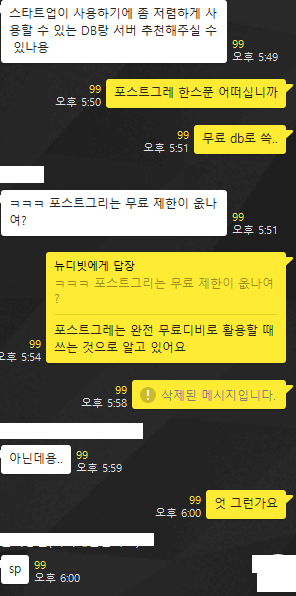 평소에 얘기하는 개발자 톡방이 있는데 어떤 한 개발자분이 Database와 server에 대해서 추천 부탁주셔서 그 시각에 걷기 운동하다가 본 저는 답변하기 위해서 생각했습니다. 예전에 MySQL이 유료로 변경됐다는 얘기를 들었던 적이 있어서 유료겠지 하고 넘어갔던 내용과 포스그레의 경우 공부할 때 완전히 무료로 활용된다고 들어서 그것을 추천하고 이유를 남겼는데 잘하시는 시니어 개발자님이 아니라고 답변해주셔서 띠용했습니다.