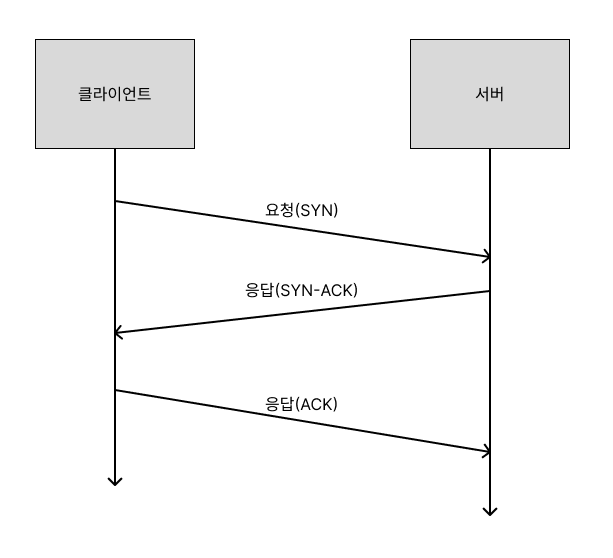 3) 클라이언트가 "응답(ACK)" 메시지를 다시 보내면 연결이 성립됩니다.