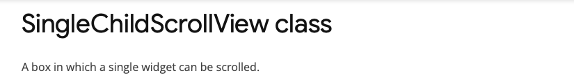이해를 위해 조금 풀어내면 하나의 위젯(child)만을 스크롤 가능하게 감싸는 박스를 만들기 위한 용도로 사용 될 수 있다.